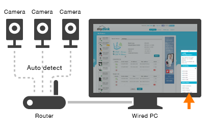 Instead of setting up each camera individually, just connect all your Cloud Cameras to your mydlink-enabled Cloud Router to automatically configure them. No networking knowledge is required; mydlink does the work for you.
